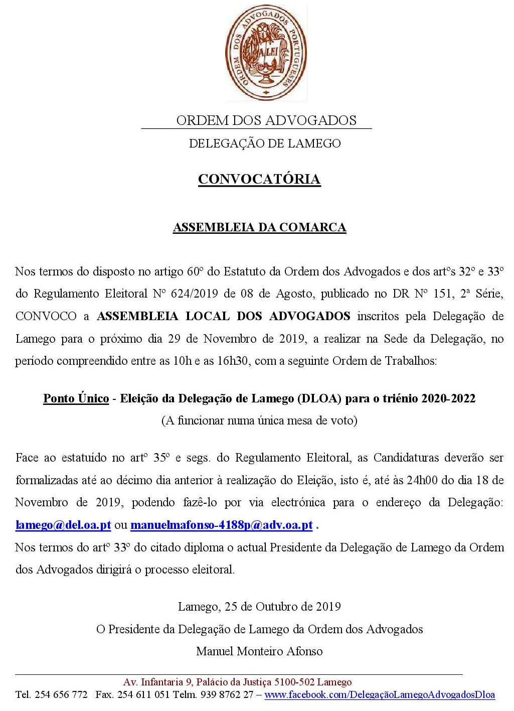 Convocatória Eleições Triénio 2020-2022