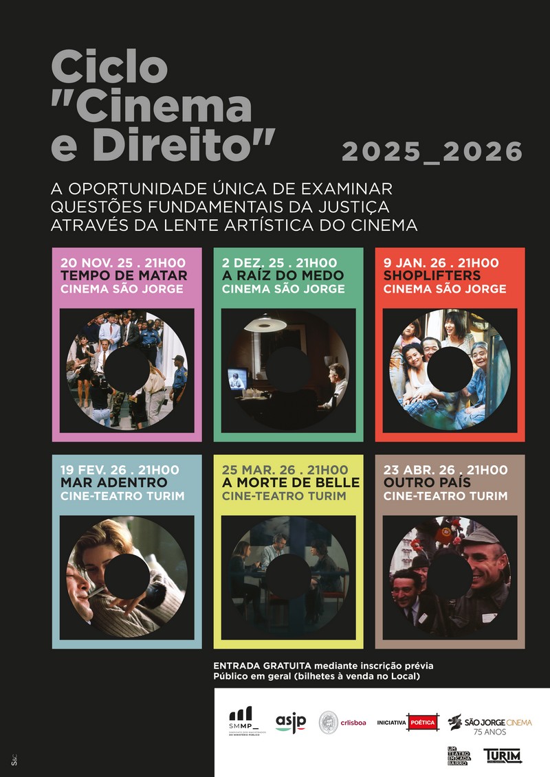 Tem início, em novembro de 2025, a 2ª Edição do ciclo “Cinema e Direito”, coorganizado pelo Conselho Regional de Lisboa da Ordem dos Advogados, pela Direção Regional Sul da Associação Sindical dos Juízes Portugueses (ASJP), pelo Sindicato dos Magistrados do Ministério Público (SMMP) e pela Iniciativa Poética.