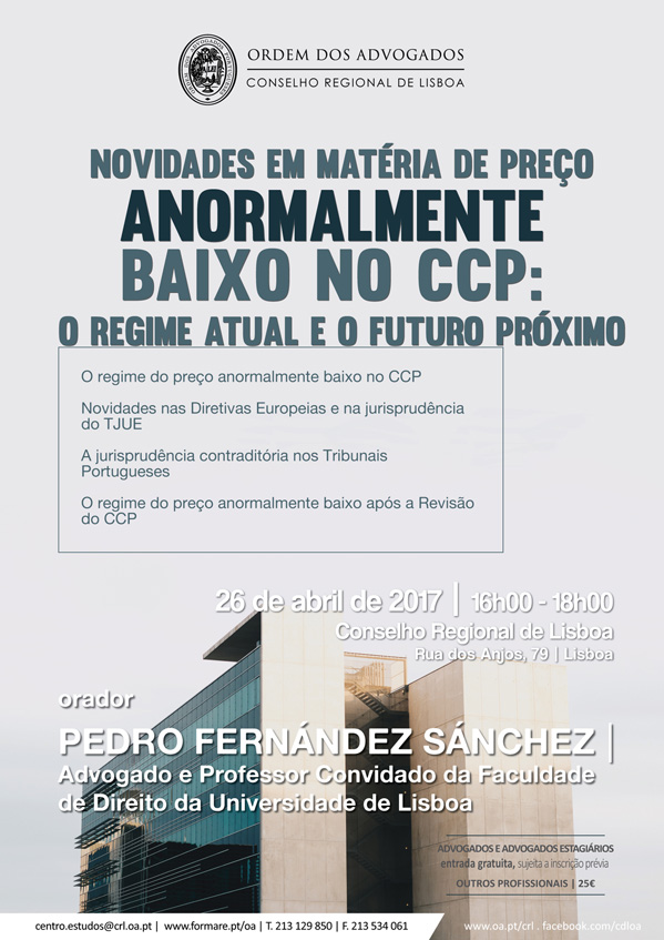 12-04-2017Novidades em matéria de preço anormalmente baixo no CCP: o regime atual e o futuro próximo | 26 de abril