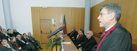 O presidente da Ordem dos Advogados considera que a advocacia está “numa encruzilhada” entre a prestação social, “libertadora”, e a actividade económica, que pressupõe um “poder escravizante” face ao lucro. “Cabe-vos a vós escolher o caminho. Por mim prefiro ficar pela primeira”, referiu Daniel Andrade aconselhando a que nunca se desviem da matriz da advocacia, que é estar ao serviço do cidadão e da cidadania.