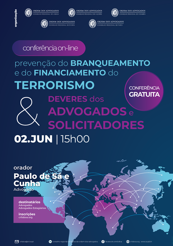 Conferência On-Line "Prevenção do Branqueamento e do Financiamento do Terrorismo e Deveres dos Advogados e Solicitadores" - 2 de junho de 2020 às 15h00m