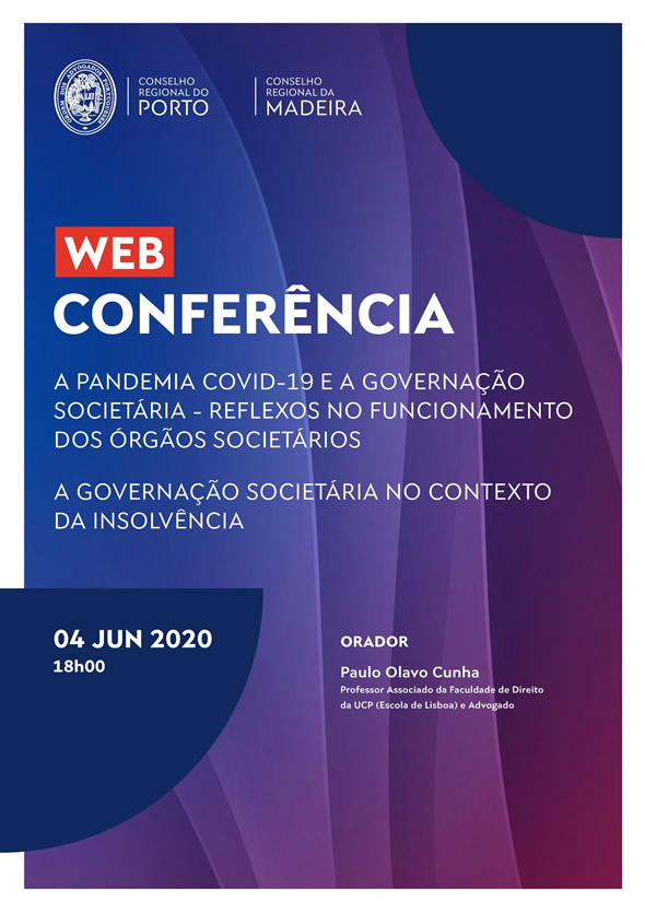 Neste contexto de pandemia inúmeras dúvidas têm sido suscitadas no âmbito da governação societária e da insolvência, motivo pelo qual os Conselhos Regionais do Porto e da Madeira consideram premente a realização destas ações formativas que procurarão dissipar e esclarecer o “emaranhado” legislativo que surgiu após a decretação do estado de emergência.